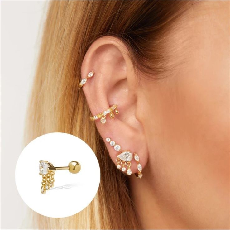 حلق أذن وحدة متصل فضة مطلي ذهب