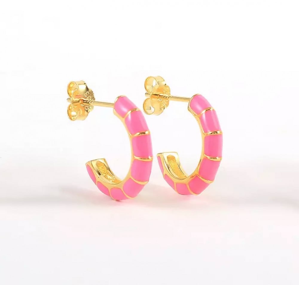 حلق بحجر أوبال فردة فضة مطلي ذهب*
