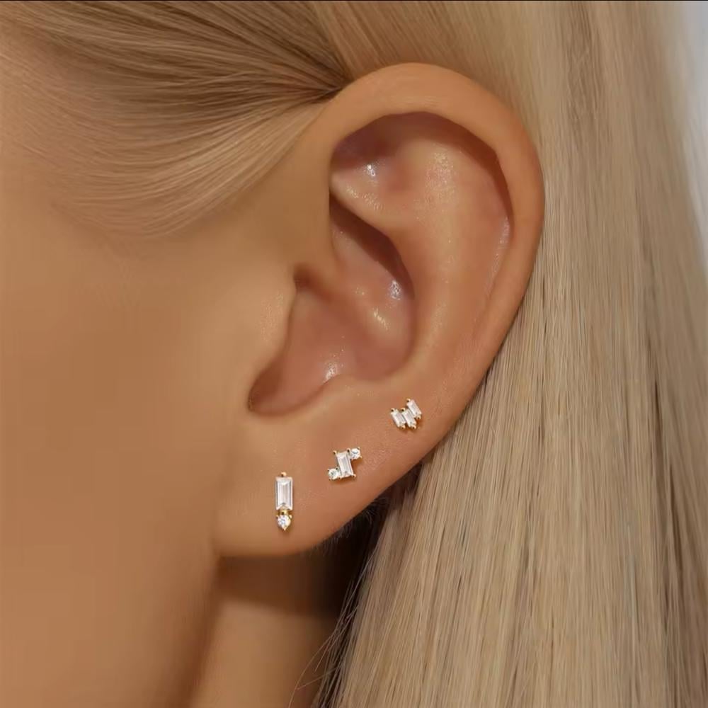 طقم حلق فردتين فضة مطلي ذهب- فوشيا