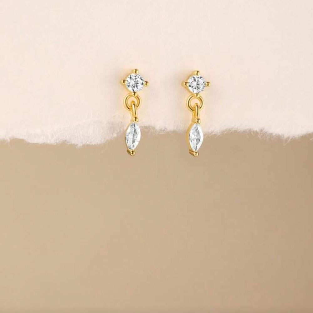 طقم حلق فردتين فضة مطلي ذهب-أصفر