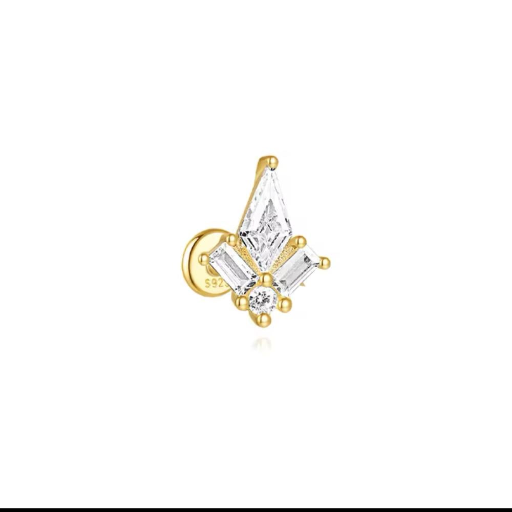 *حلق فردة فضة صافي مطلي ذهب - قفل فراشة