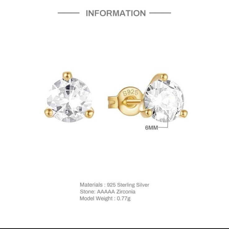 حلق فردة فضة صافي مطلي ذهب stud