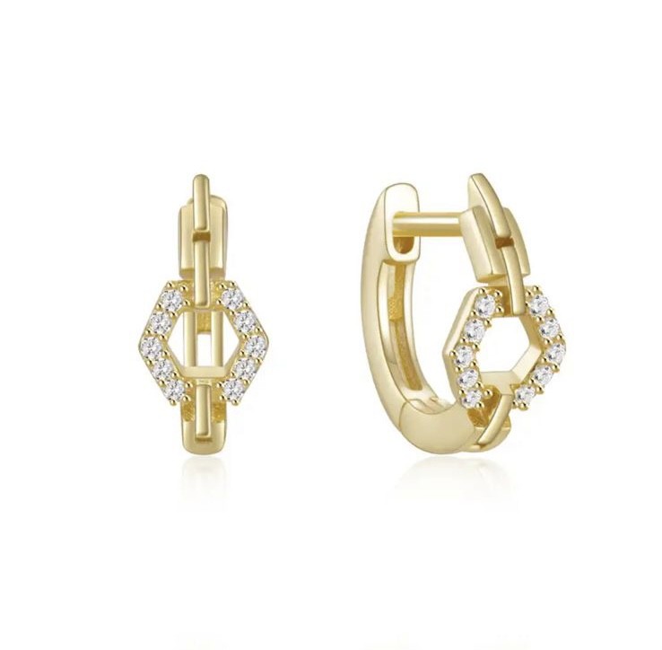 حلق فردة فضة مطلي ذهب بقفل مميز