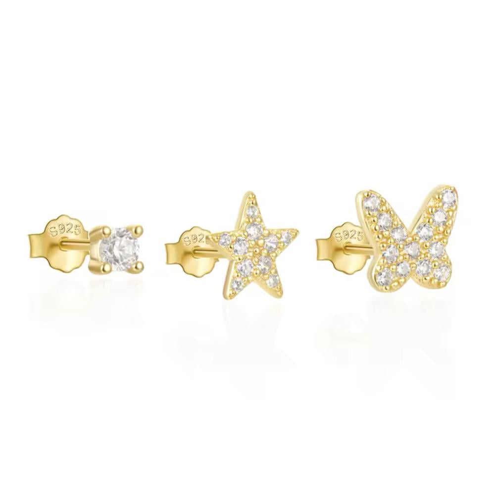 *حلق فردة فضة صافي مطلي ذهب - قفل فراشة