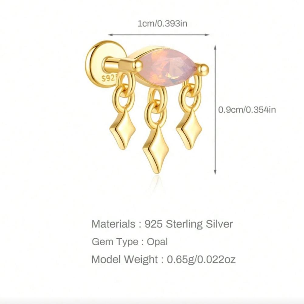 حلق بحجر أوبال فردة فضة مطلي ذهب*